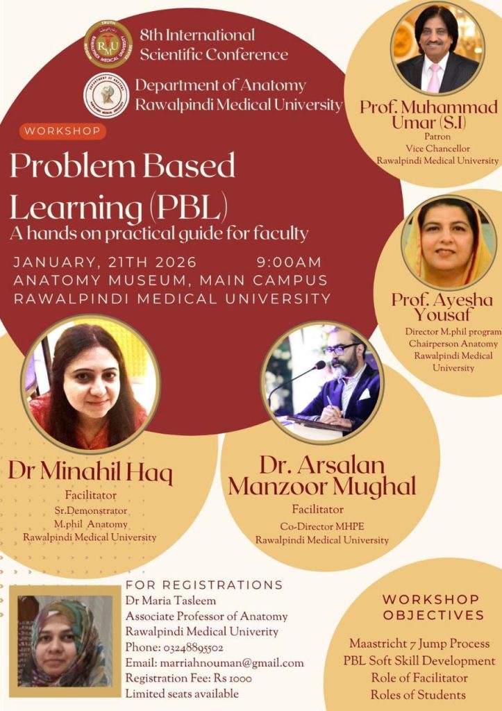 - Workshop on “Essential Powerpoint Skills for developing presentations according to Prof Umar’s Model of Integrated Sessions” conducted by Dr Arsalan Manzoor Mughal on 02-10-2023 at Anatomy Lecture Hall 3.
