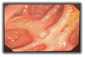1. A 44-year-old male presents with a 5-year history of chronic diarrhea and recent right lower-quadrant abdominal pain. Colonoscopy reveals the appearance shown in the image, with multiple elongated superficial ulcers and intervening normal mucosa. Which of the following is the most likely diagnosis?