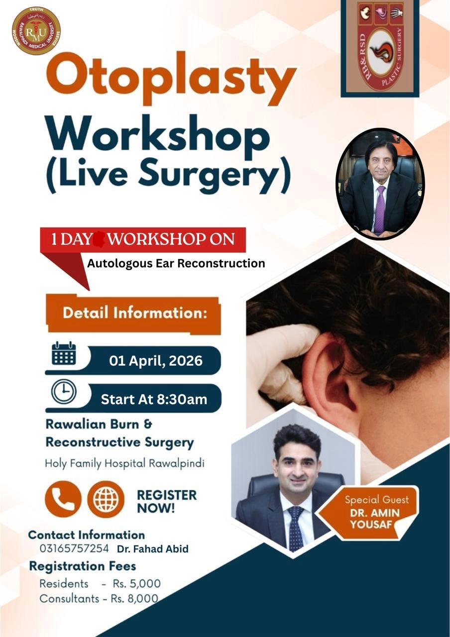 Otoplasty Workshop (Live Surgery) - 01 April 2026 held at Rawalian Burn & Reconstructive Surgery, Holy Family Hospital Rawalpindi.