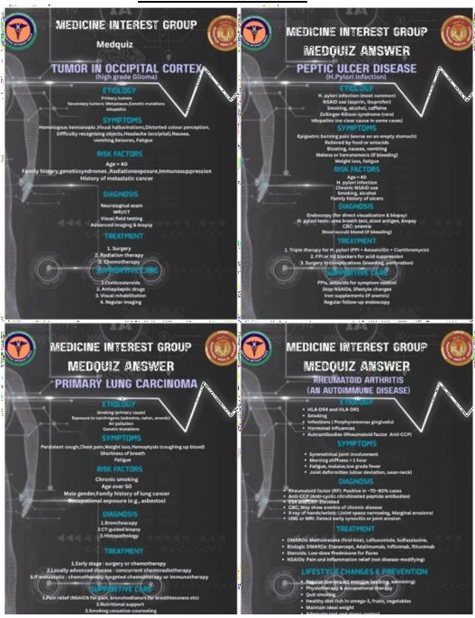 The Media and Publication section of the Medicine Interest Group is responsible for managing all social media activities and event coverage. The department designs engaging pre- and post-event posters, reels, and highlights to promote MIG initiatives. It ensures effective communication and outreach by maintaining the group’s online presence and showcasing its