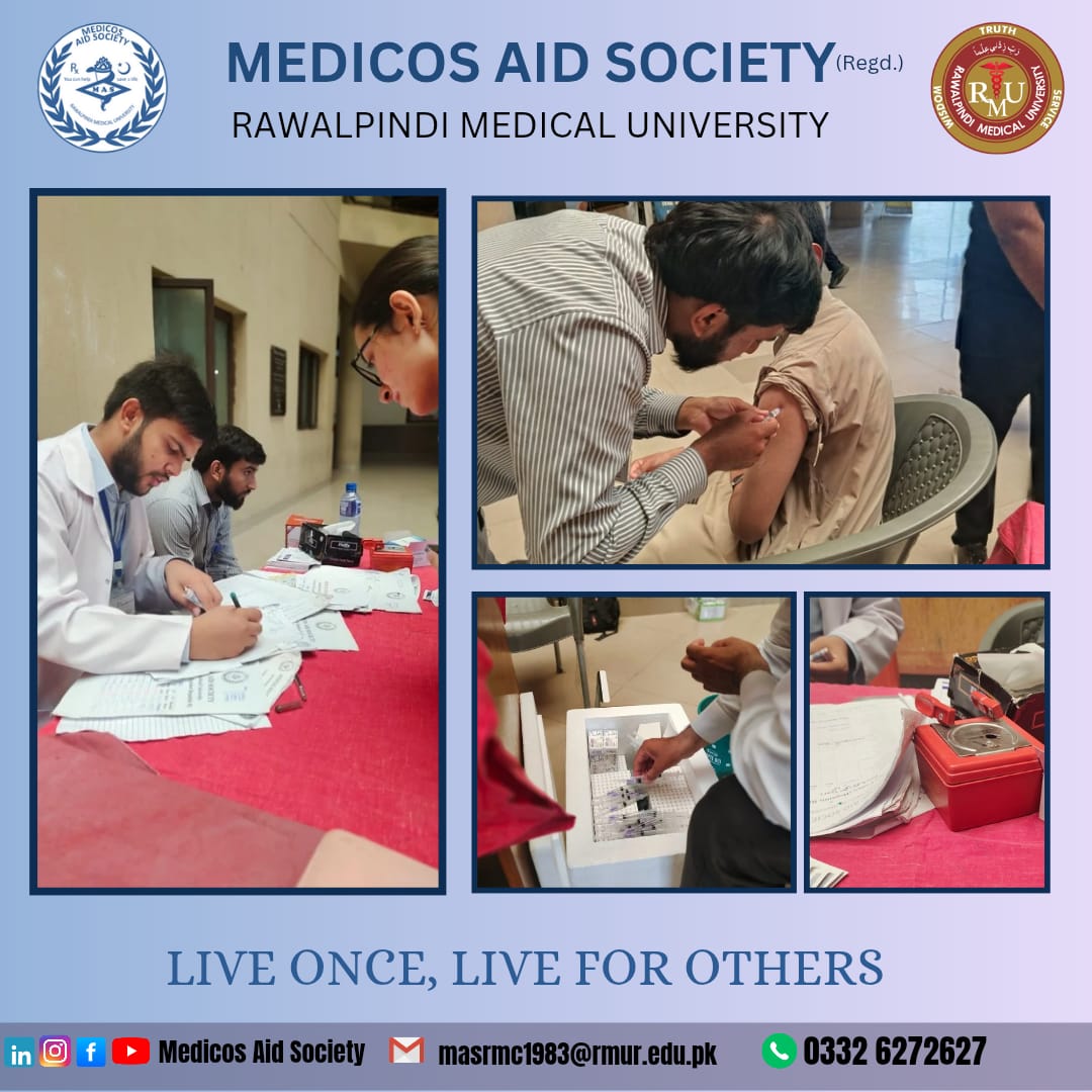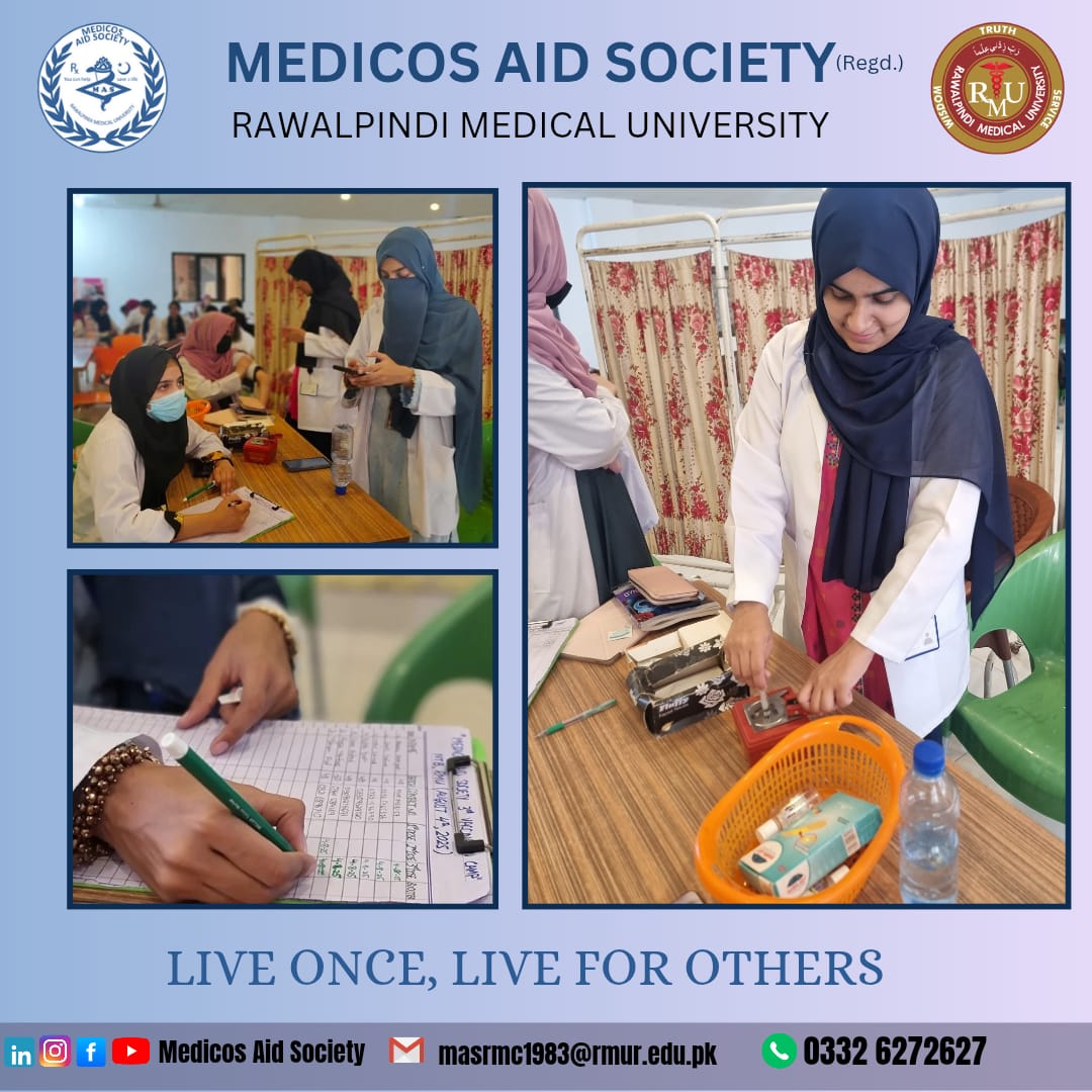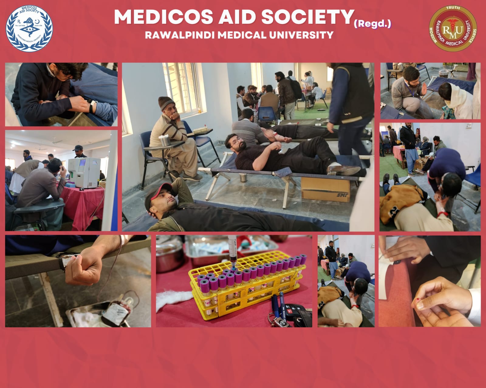 Medicos Aid Society is a student-based, non-political, welfare organization of Rawalpindi Medical University, organized in the name of selflessness, devotion and service. It was founded on 28th April, 1983 by Dr. Babar Alam, Dr. Amir Sherwani and his devoted fellows, with the aim of providing blood for thalassemic children. Since then, its members are actively and positively working for the poor and suffering humanity and doing all possible efforts to uplift the moral values of the sufferers by providing blood, medication and financial support. The society is registered with Social Welfare and Bait-ul-mal Department of Government of Punjab. It is working under the patronage of Vice-Chancellor RMU, Professor Dr. Muhammad Umar (Sitara-e- Imtiaz), for the betterment of mankind