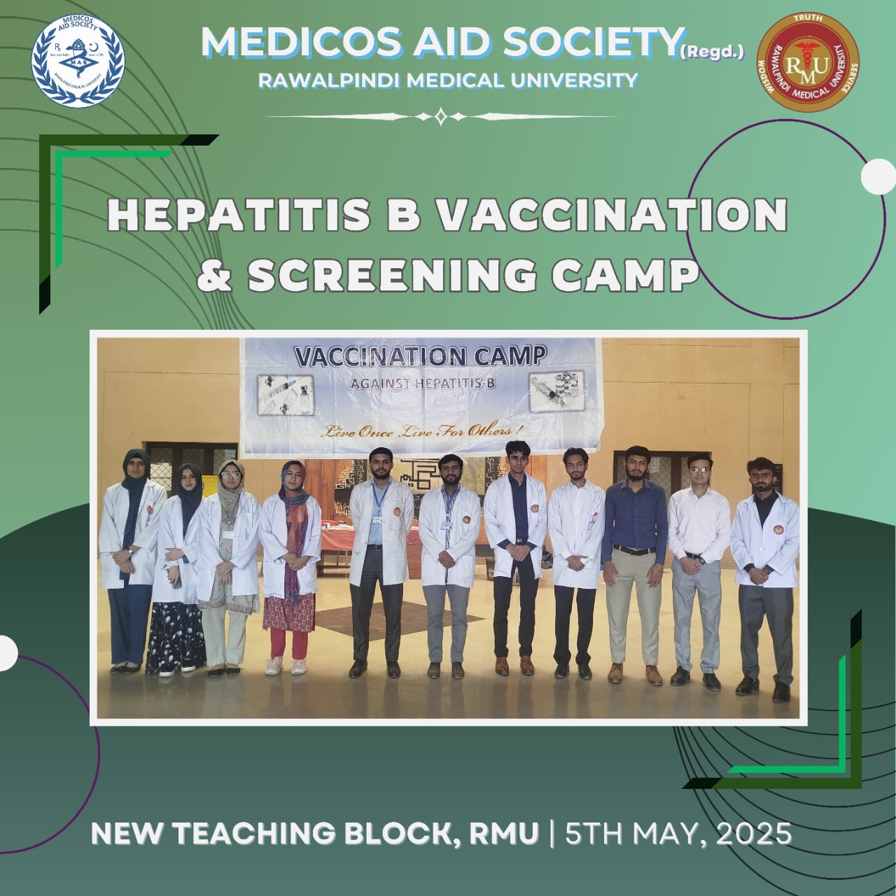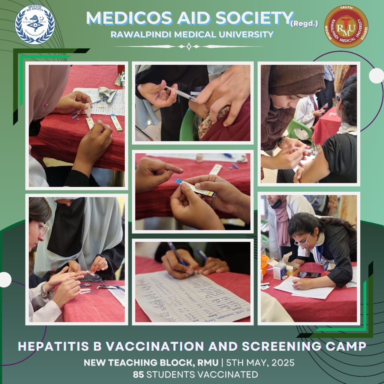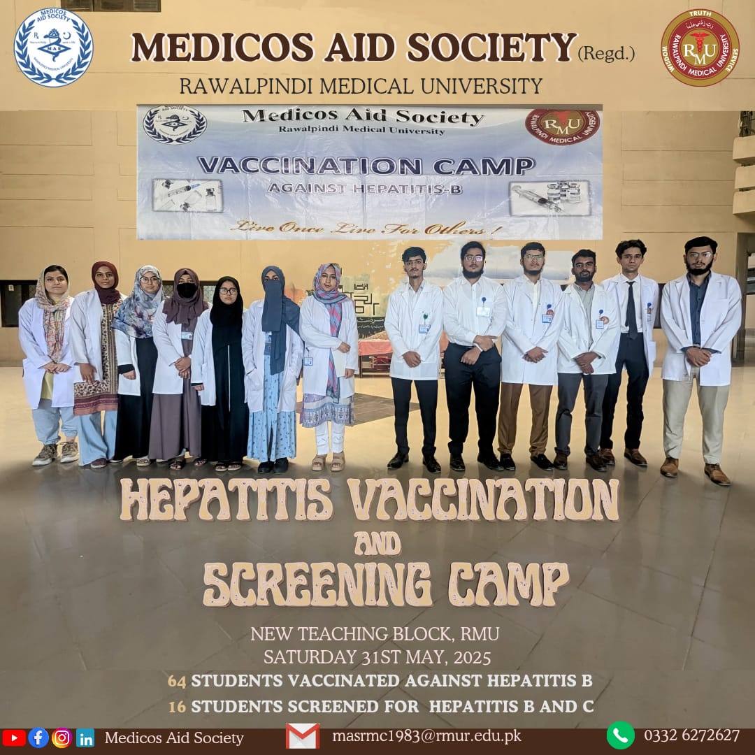 Medicos Aid Society organized a vaccination & screening camp against Hepatitis B on Saturday, 31st May, 2025 at New Teaching Block, RMU and vaccinated 64 students.