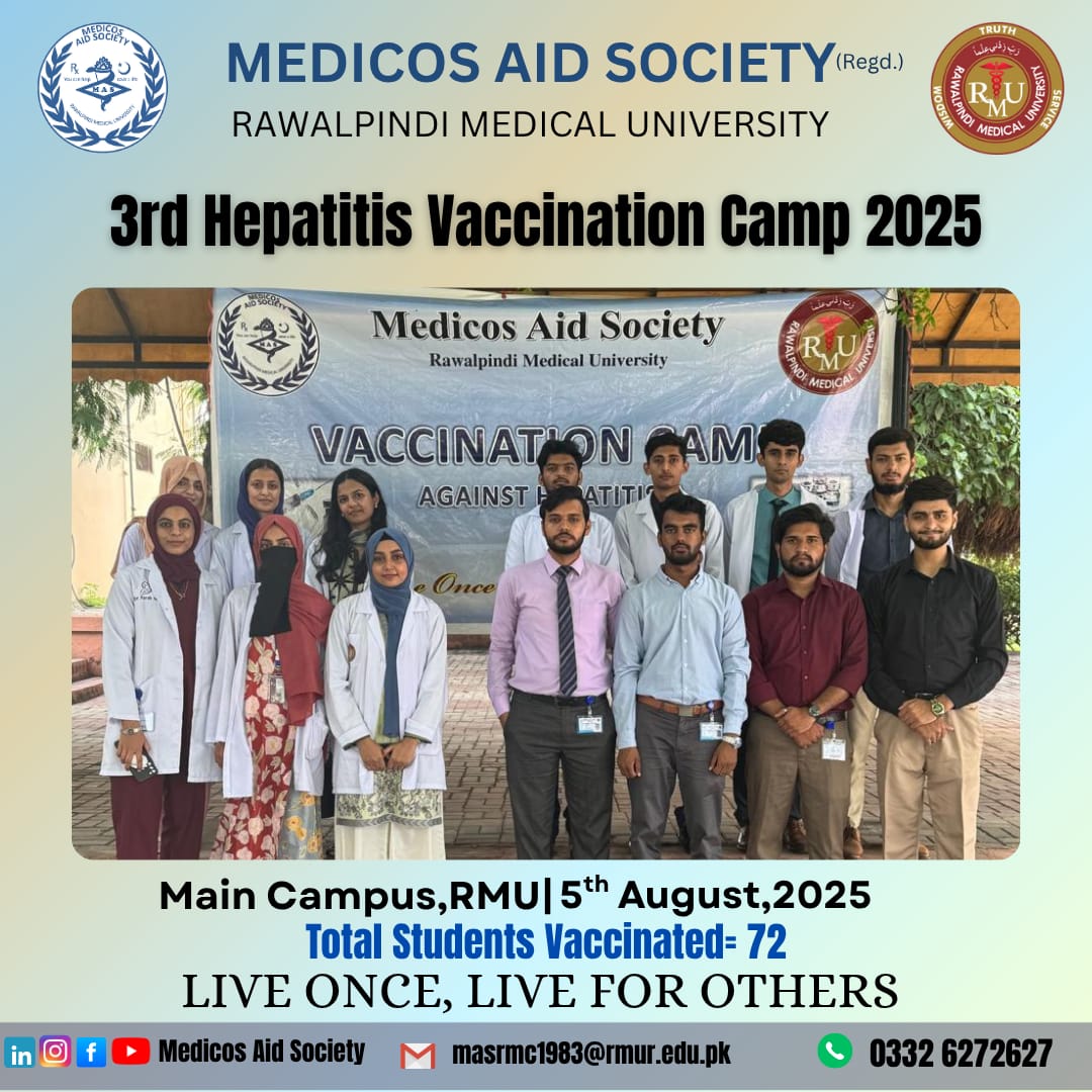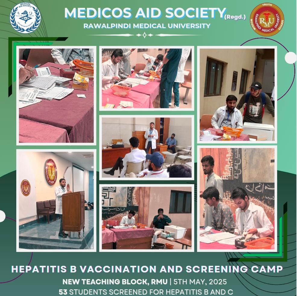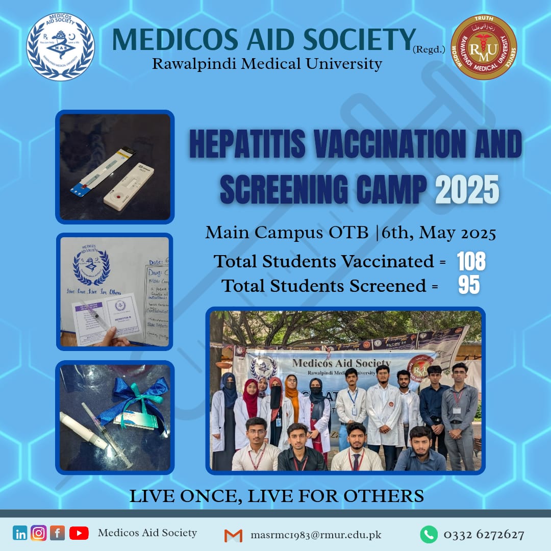 Medicos Aid Society organized a vaccination & screening camp against Hepatitis B on Saturday, 31st May, 2025 at New Teaching Block, RMU and vaccinated 64 students.