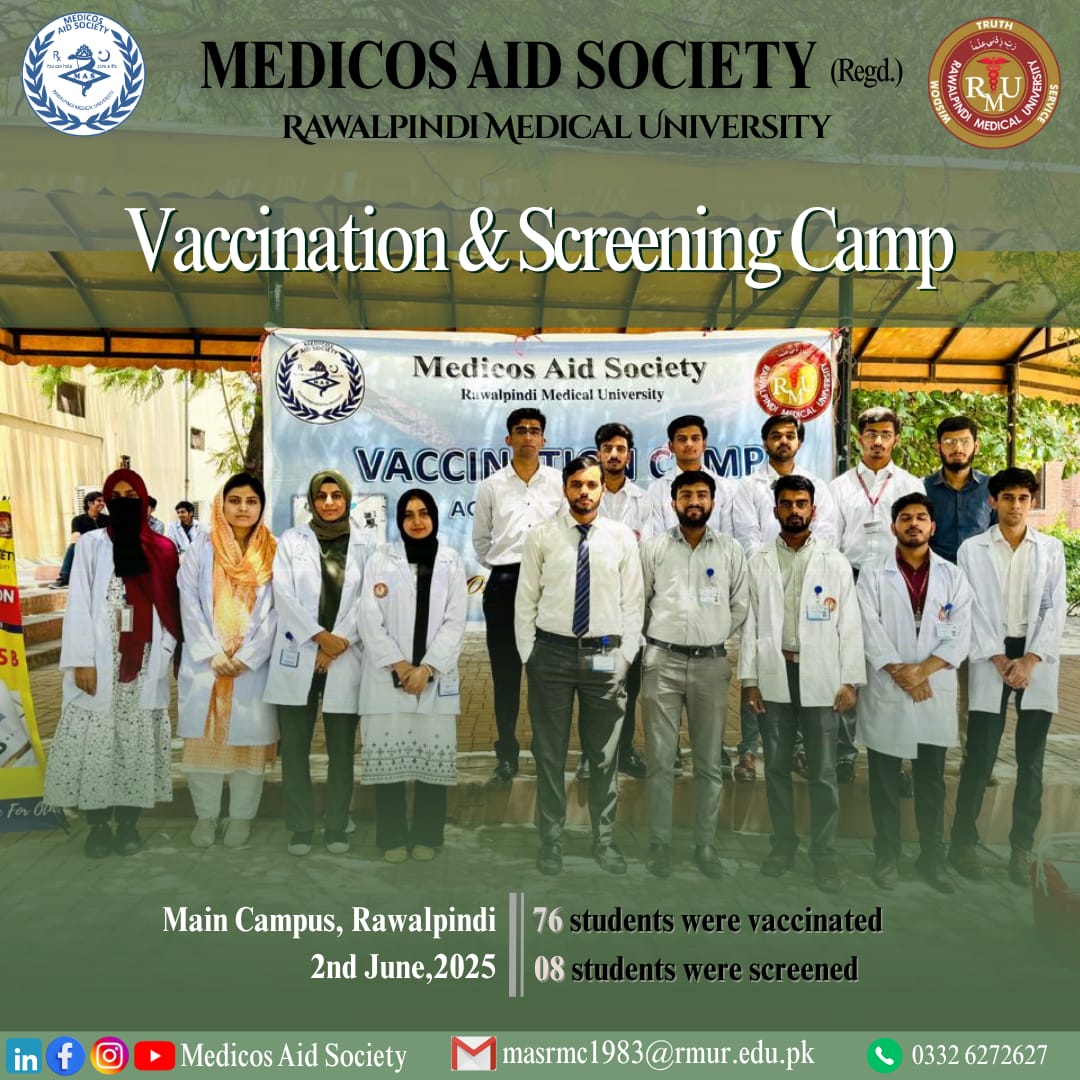 Medicos Aid Society organized a vaccination & screening camp against Hepatitis B on Monday, 2nd June, 2025 at Main Campus, RMU and vaccinated 76 students.