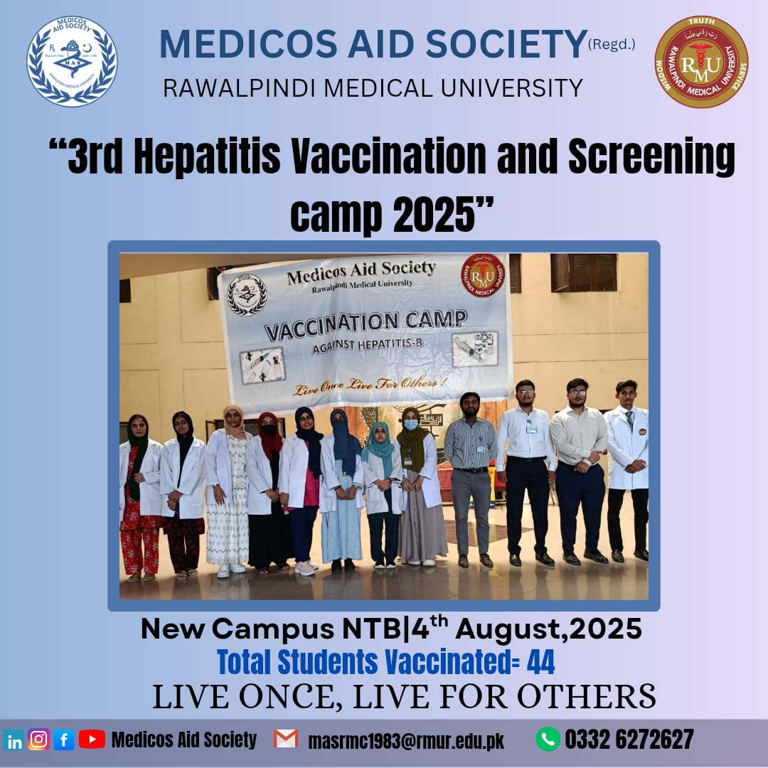 Medicos Aid Society organized a vaccination & screening camp against Hepatitis B on Monday, 4th August, 2025 at New Teaching Block, RMU and vaccinated 44 students.