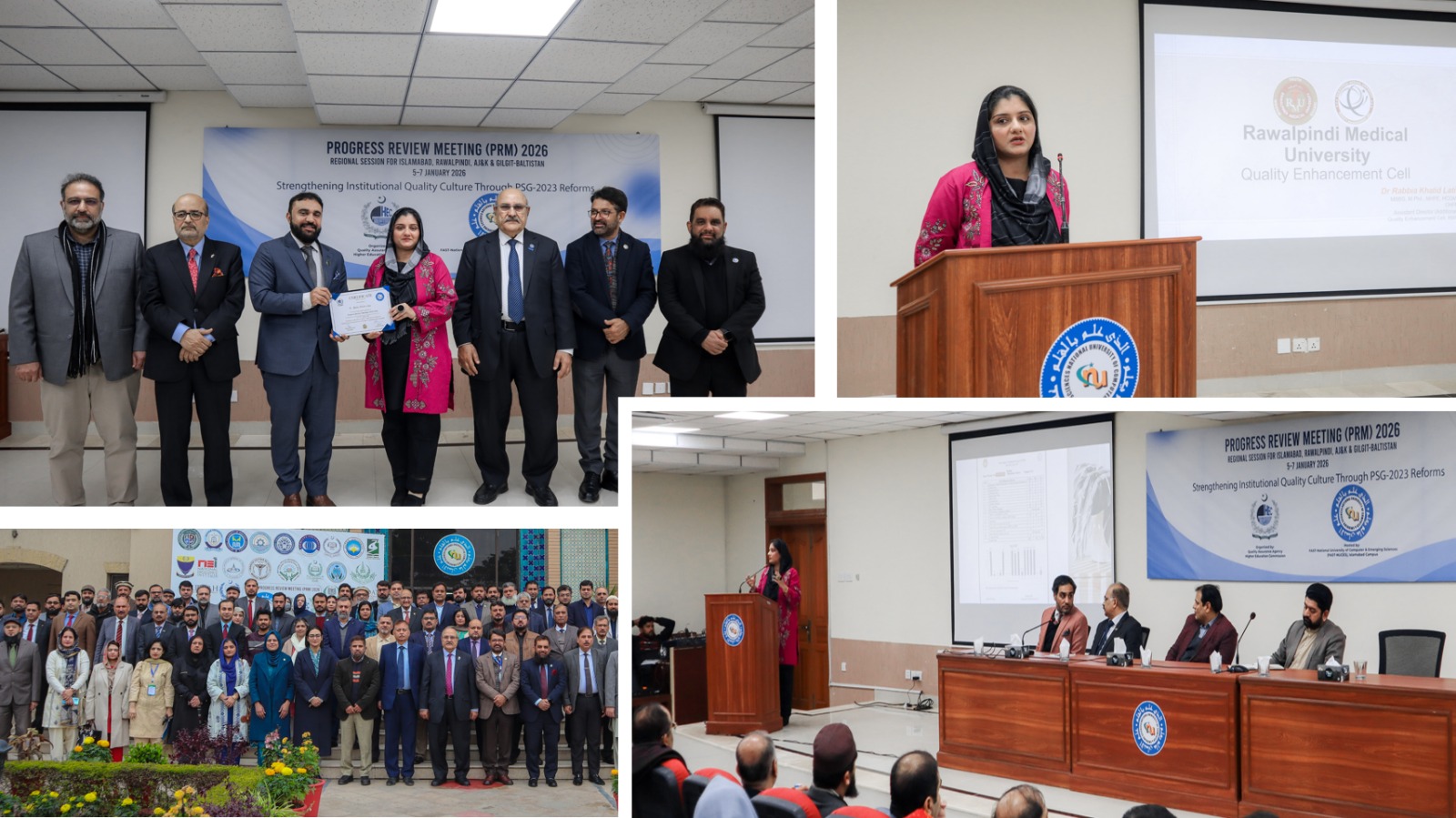 Alhamadolillah, Once again RMU is at the TOP by fetching The Best Presentation in the HEC Annual Review Meeting in Jan 2026: “The Best Practices in Universities.” Dr. Rabeeha, Asst. Director of QA RMU, gave a presentation in the forum. 54 Universities participated in review meeting