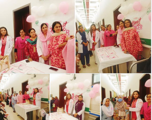 Activity was done in Gynae OPD of Benazir Bhutto Hospital, Rawalpindi Medical University Faculty and Students Rawalpindi by establishing an awareness counter and giving information on importance of breast cancer self examination and early detection.