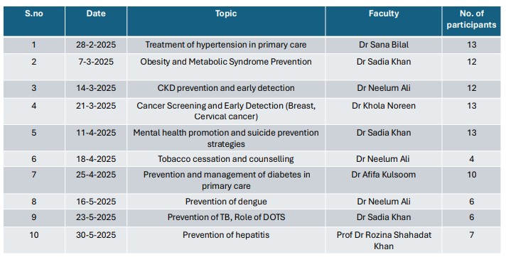 - To enhance the knowledge and practical skills of GPs in managing common communicable and non-communicable diseases