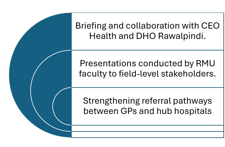 The Hub and Spoke model by RMU provides a strategic, scalable platform for upgrading GP capacity across Punjab. It bridges academic institutions and field-based practitioners, offering structured training and system-wide integration for improved healthcare delivery at the primary level.
