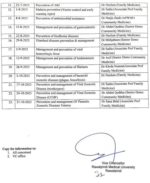 Rawalpindi Medical University (RMU) is steadfast in its commitment to community service, recognizing the critical role healthcare institutions play in enhancing the well-being of society. The university’s extensive community outreach programs demonstrate this dedication, with faculty, students, and alumni consistently at the forefront of healthcare delivery across the region. Through its innovative Hub-and-Spoke model, RMU extends quality medical services and expertise to neighboring underdeveloped areas, addressing healthcare disparities and fostering a robust medical network